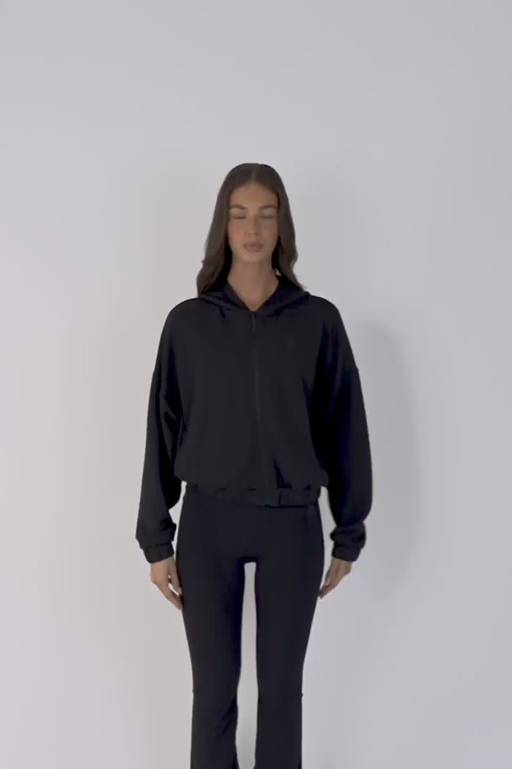 • Oversized hoodie with internal elastic at hem and cuff