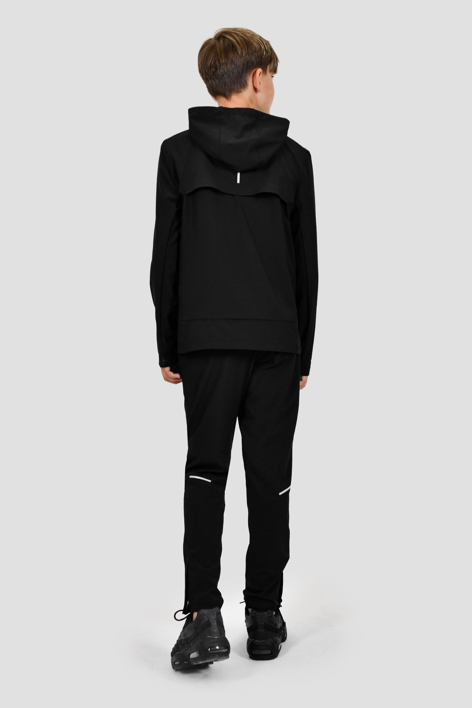 La veste Velocity Garçons en noir offre une coupe standard pour un confort tout au long de la journée. Les détails réfléchissants assurent la visibilité dans des conditions de faible luminosité, tandis que les panneaux avant et arrière à ventilation collée vous permettent de rester au frais lors d'activités intenses. Fabriqué dans un tissu léger qui évacue la transpiration, il est doté de poignets élastiques et de poches zippées pour plus de commodité.